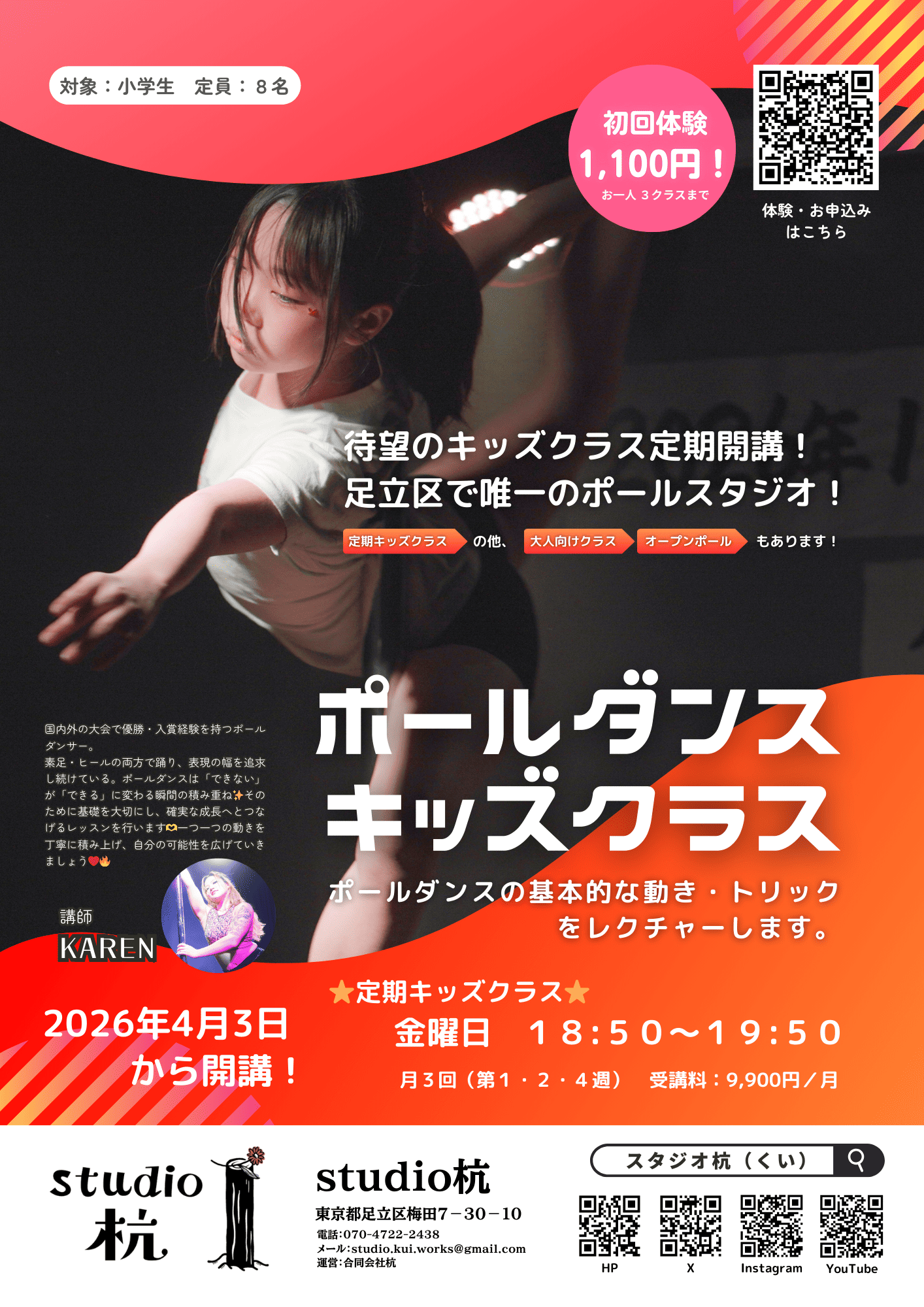 重要【2026年4月3日開講!】足立区唯一のポールダンス・キッズ定期クラスがスタート!